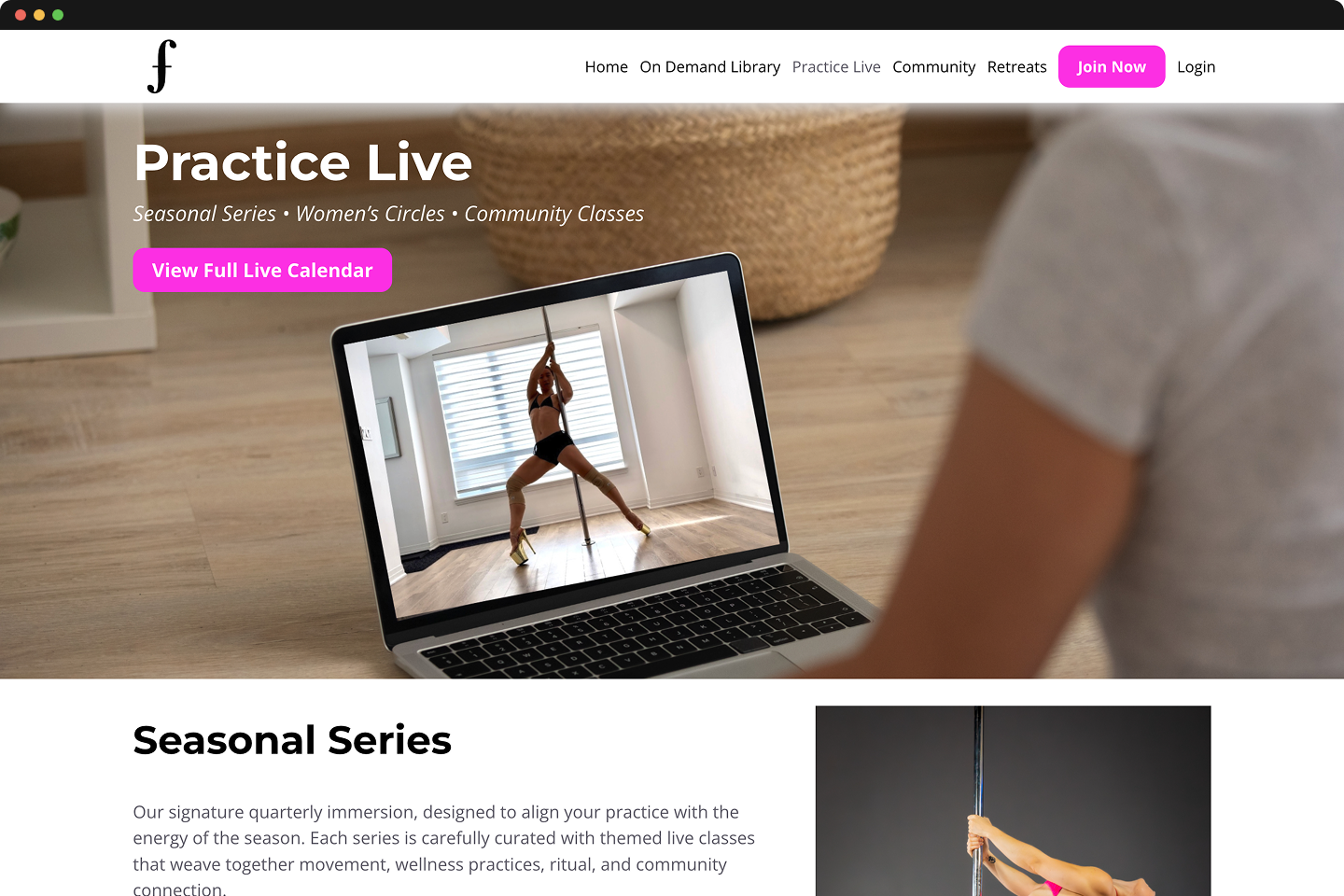 Join our live seasonal series, women’s circles, or pop-up workshops where you can connect with the rest of the fEMBODY global community, learn from special guest instructors, and receive real-time feedback for your practice.