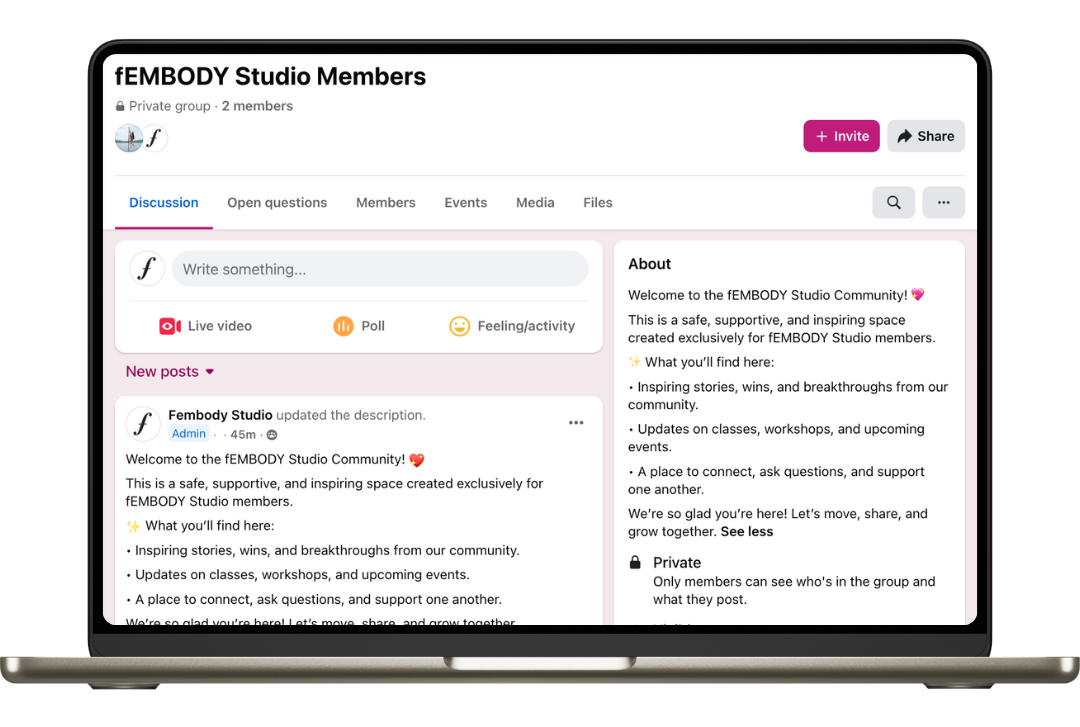 Every membership includes access to our private Facebook group, where you can share wins, ask questions, and connect with others on the same journey. We celebrate each other here—in progress, in power, and in process.