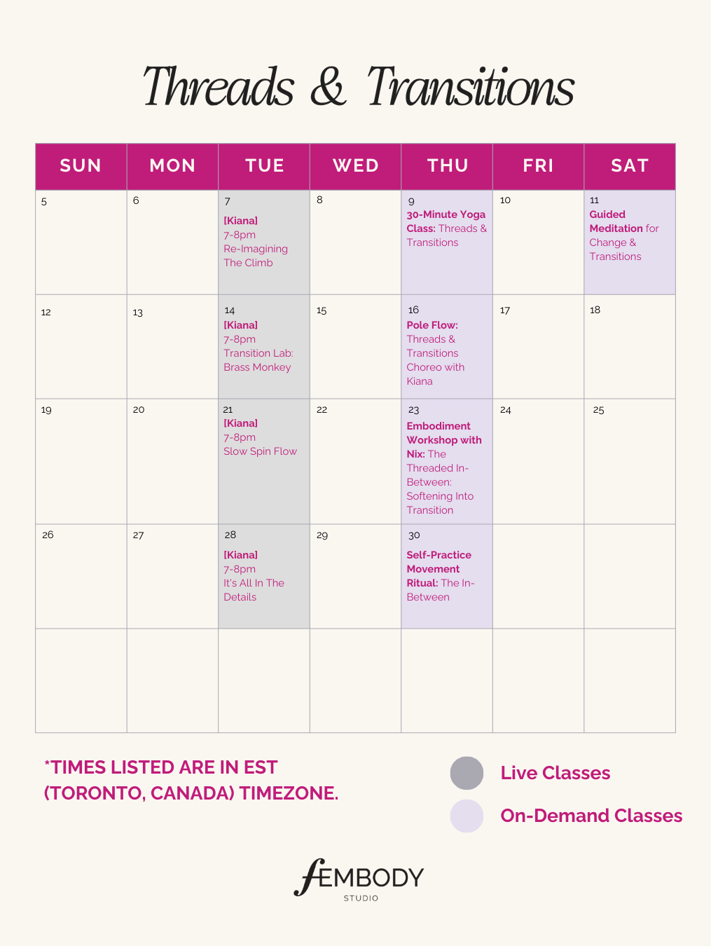 Already a member? Login and register for the live classes in the calendar below!